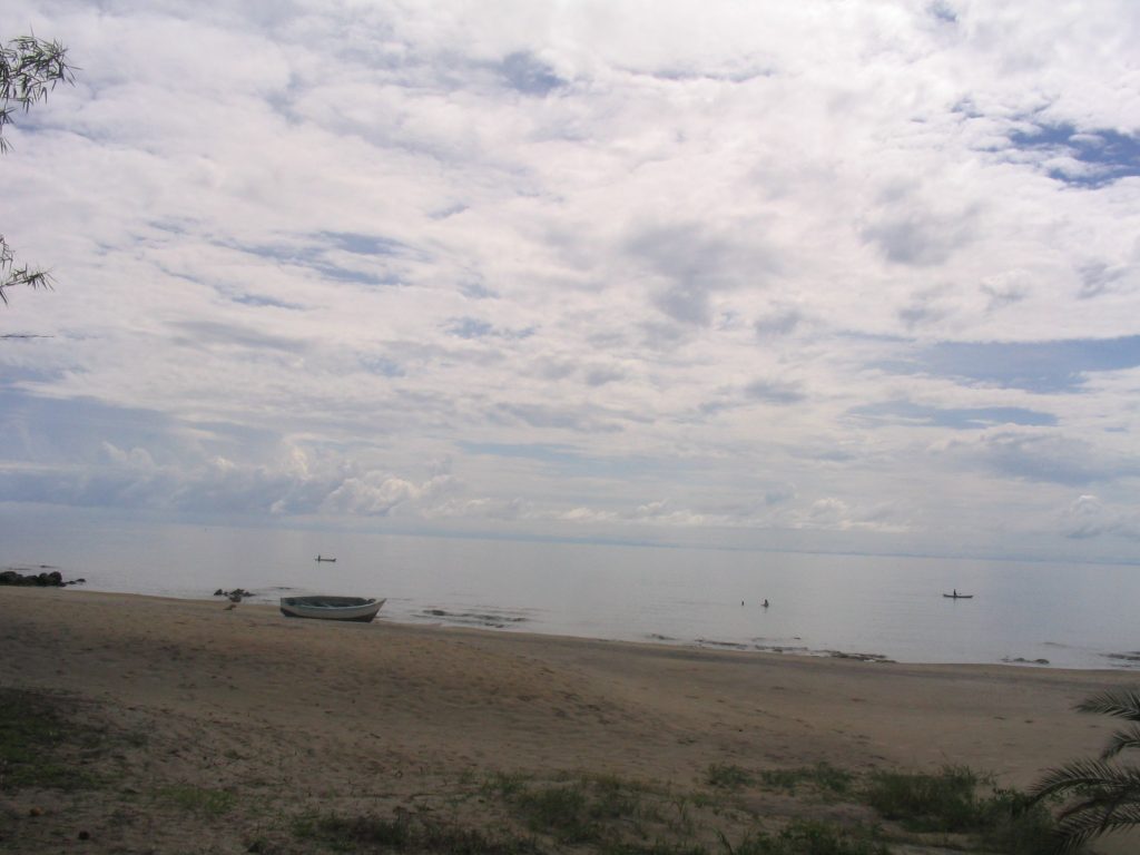 Tulimme Malawi-järven rannalle. Kaunis iso järvi. Vastarannalla näky Mosambik. Kännykkä toimi, mutta huonosti.