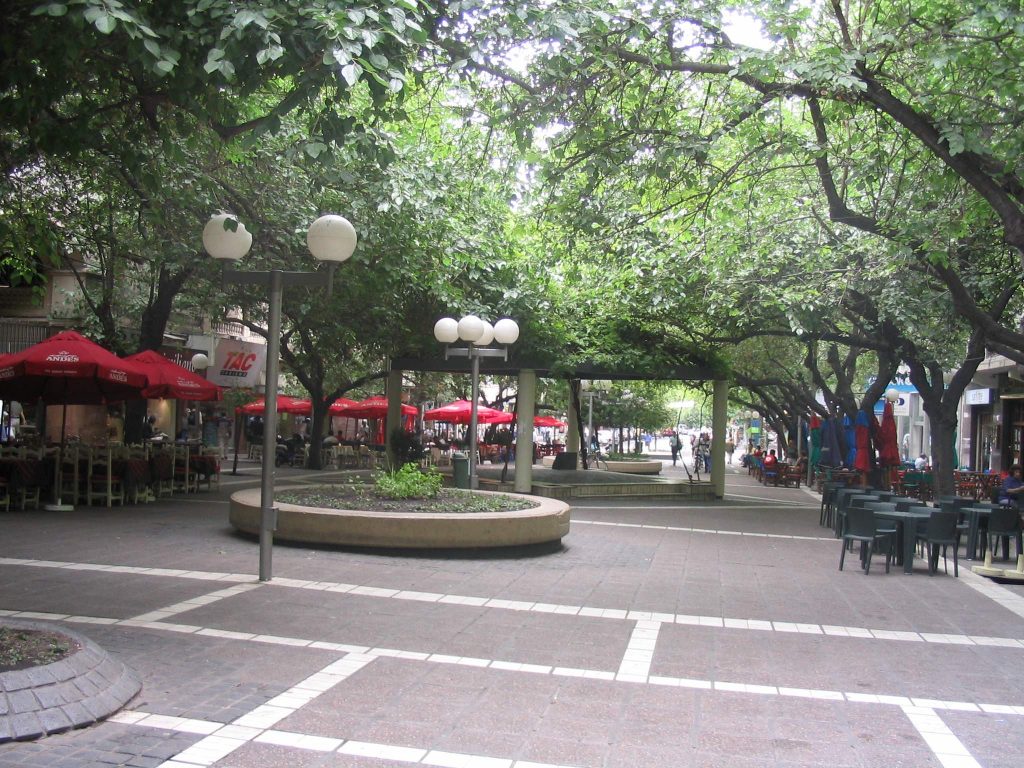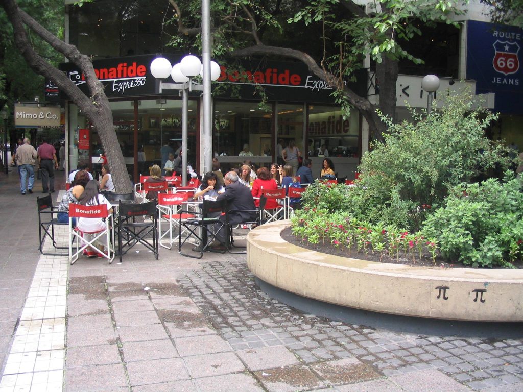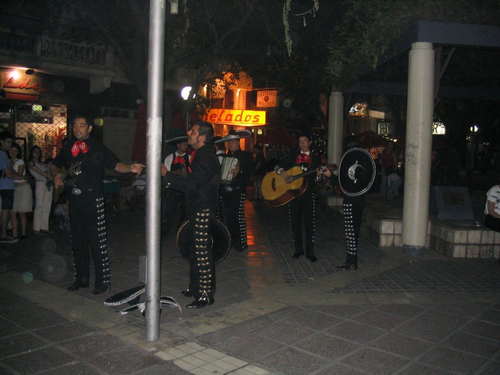 Mendozassa oltiin jo aamuviideltä. Minulla ei ollut penniäkään Argentiinan rahaa, eikä siihen aikaan saa vaihdetuksi mitään. Taksit eivät suostuneet kuljettamaan us dollareilla. Siis tällainenkin ihme piti nähdä matkalla. Hortoilin asemalla puoli seitsemään asti, jolloin alkoi pimeys muuttua aamuhämäräksi ja lähdin kaupungille. Vähän hirvitti lähteä vieraaseen paikkaan ihan pilkkopimeässä, ei ollut katuvalojakaan, kun näki vain puita. Tämä on aika jännä puistokaupunki, joten hotellin löytyminen vei vähän aikaa. Nukuin muutaman tunnin ja lähdin aamupalalle, jossa olen nyt tätä kirjoittamassa.