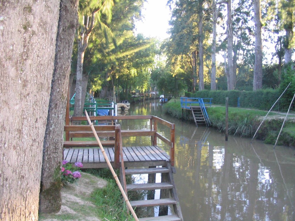 Oli jo ilta, ja alkoi olla perhosia vatsassa, mihin yösijaan pääsen. No, hosteriaan pääsen, kun ensin menen veneellä puoli tuntia, ja hyppään pois Bora Boran kohdalla ja sitten kävelen 300 metria jä niin päin pois. Ja toden totta. Täällä on venebussit, ihan kuin Veneziassa, mutta nämä ovat jokia, ei kanavia. On isoa jokea, ja pikkupuroa. Hosteria oli tehnyt järven patoamalla pienen puron. Sen vesi haisi ja oli likaista. Ja kun laskupuroon ei tullut uutta vettä, oli se täynnä ötököitä, jotka kiusasivat minua koko yön. Eihän tällaisessa kaupungissa voi turisti olla, jossa hotellimatka vie puoli tuntia ja veneitä kulkee tunnin välein. Siksi istun tässä lähellä juna-asemaa. Junia Buenos Airesiin kulkee monta tunnissa, joten katselen kaupunkia ensin ja sitten lähden.